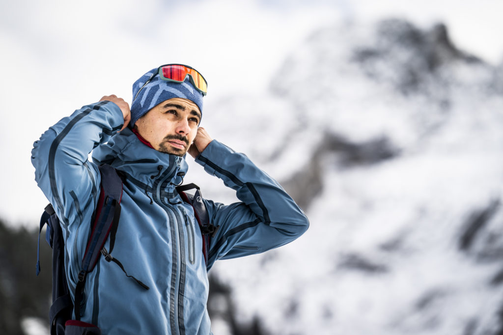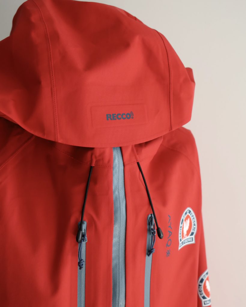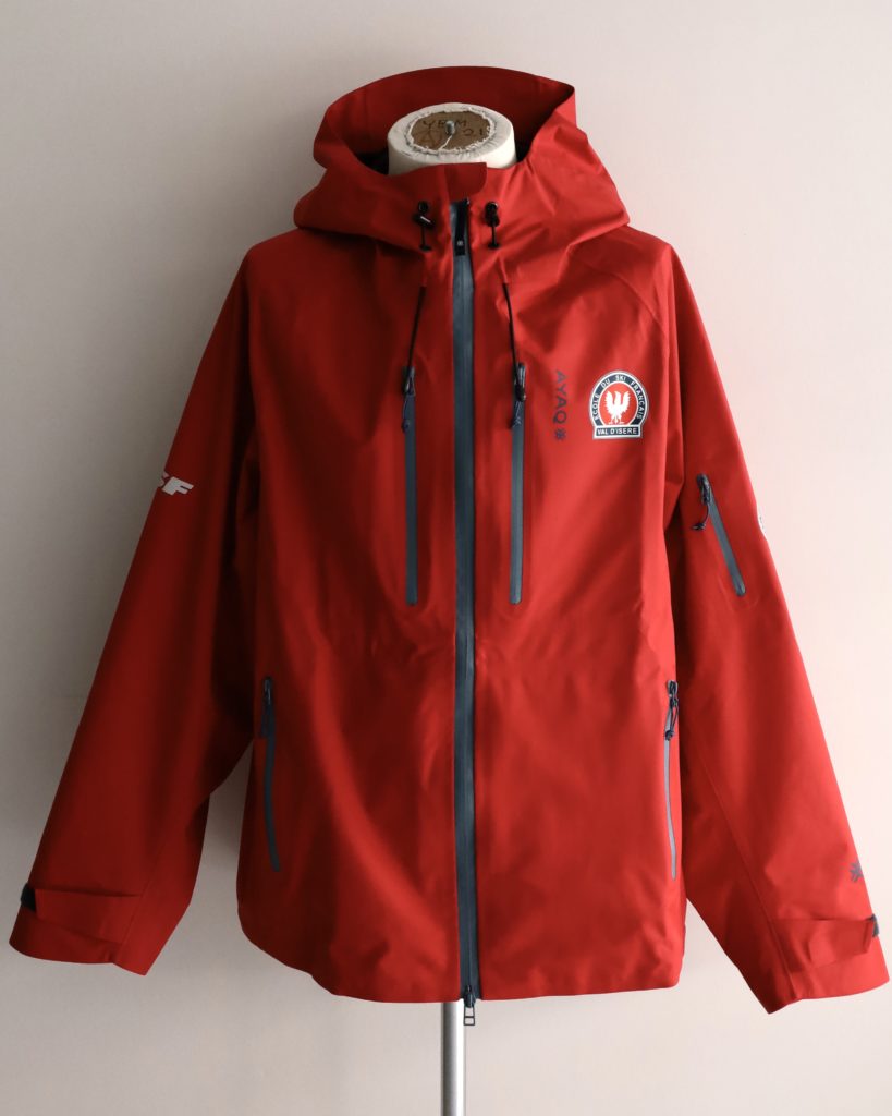 AYAQの中でもエキスパート向けのLONAK XT。氷河での突然の嵐でも身を守ってくれるほどの性能です。山岳のエキスパートは毎日着用をし、フランスのヴァルディゼールスキースクールのインストラクターに採用されています。こちらはそのスキースクールのモデルになります。
